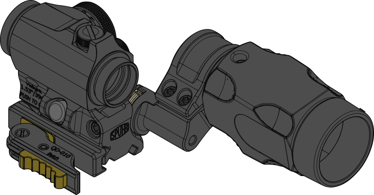 Note: Magnifier will not align with Aimpoint CompM5s or similar red dots that share a higher than T-2 optical axis. Optics are not included with the mount.